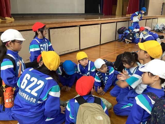 今日は、子供たちが楽しみにしていた『秋を楽しむ体験学習』です。 開会式を体育館で行った後、さっそく教員が作成した『秋(あき)らめない問題』に挑戦し、学校の外へ出かけていきました。 一日、縦割り班での交流を深めてほしいと思います。