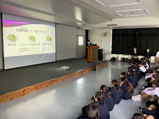 4年生は、高齢者の方々を支えるお仕事をしている方々から、認知症の正しい知識や認知症になった方への接し方について講義を受けました。