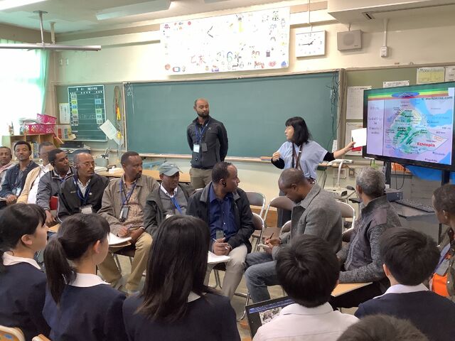 エチオピアから研修生の方々が来校されました。先週に続いて、2回目の訪問です。6年生の総合の授業を参観され、一緒に交流をしました。 最初にエチオピアの方から、国の紹介をされて興味深く聞いていました。