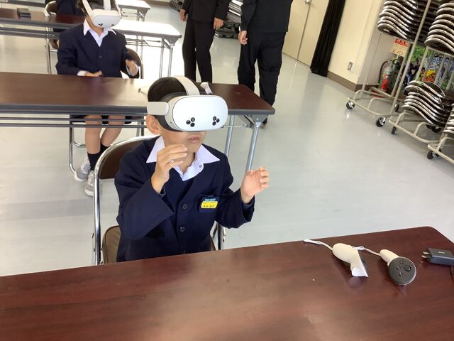 4年生は総合的な学習の時間で、様々な人との関わりについて学習しています。今回は、介護の職に就いている方から高齢者を支える大変さや仕事のやりがいについて話を聞きました。 その後、富山テレビ放送局の方の協力を得て、実際の介護をVR体験で体験させてもらいました。ゴーグルを装着し、本当の高齢者が目の前にいるように支える体験をすると、これから高齢者の方とどのように向き合うとよいか考えを見直していました。