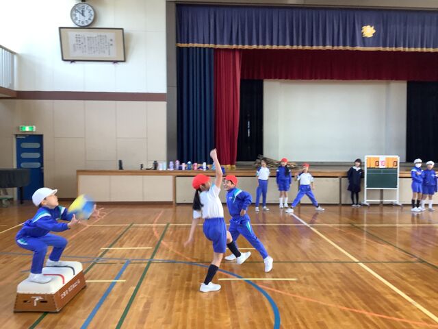 4年生は体育の授業でポートボールを行っています。この日は、リーグ戦の最終戦です。どのチームもボールをもらう動き、相手を引き付ける動きなど、ボールを持っていないときも動き回り、作戦を基に活動していました。