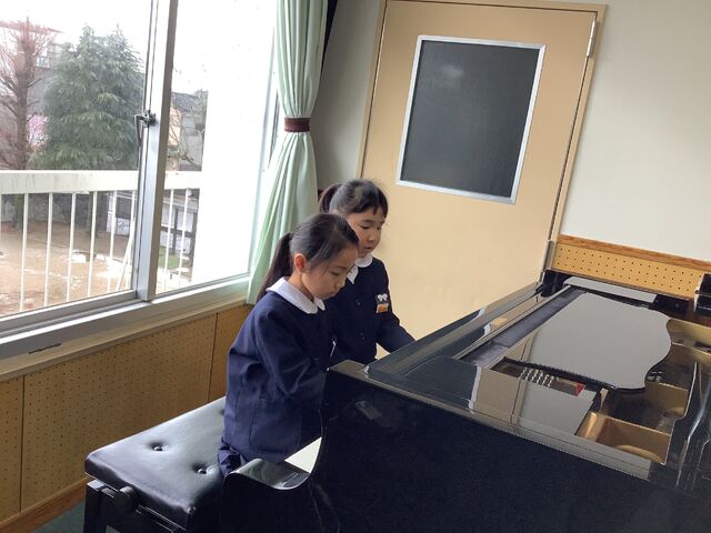 長休みに2026年最初の「ちござくらコンサート」が行われました。 今日は、2年生のピアノ演奏(連弾と個人)です。 音楽が大好きな附属小学校の子供たち。多くの観客となる他の学年の子供たちが訪れて、大盛況でした。