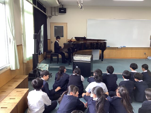 昼休みに「ちござくらコンサート」が行われました。 今日は、高学年の演奏です。 ピアノ演奏では、難しい曲もすらすら弾いており、みんなうっとりのコンサートでした。